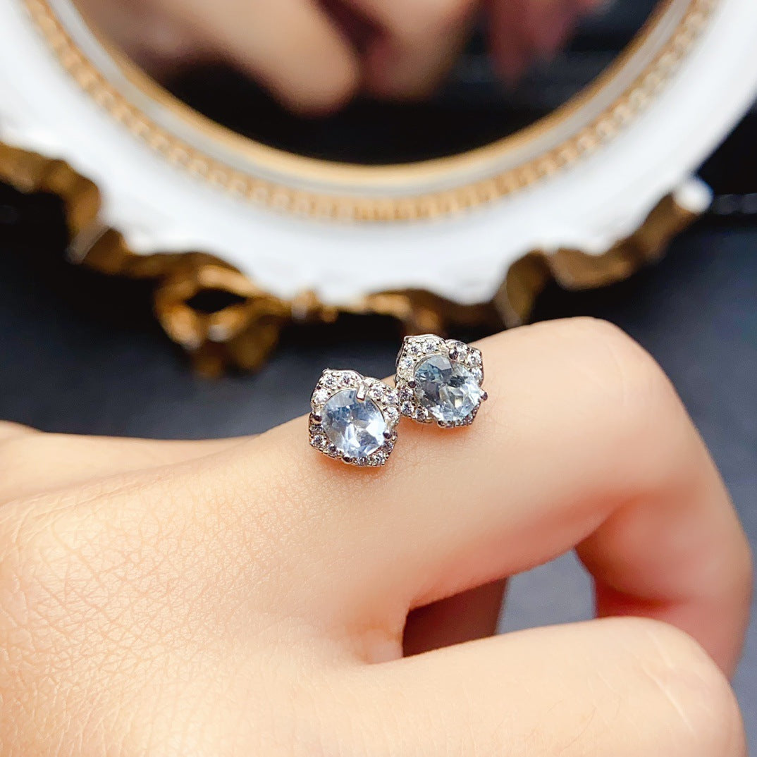 Natural Aquamarine Earrings, 925 Silver Plated with Platinum, Main Stone 4*5mm