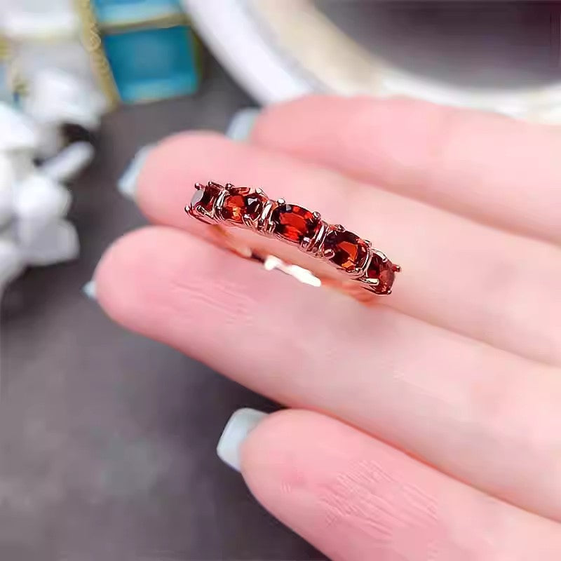 Natural Garnet Ring with S925 Silver Setting, Main Stone 3*4mm