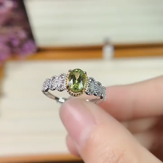 Natural Peridot Ring for Women, Set in S925 Sterling Silver, Main Stone 5*7mm